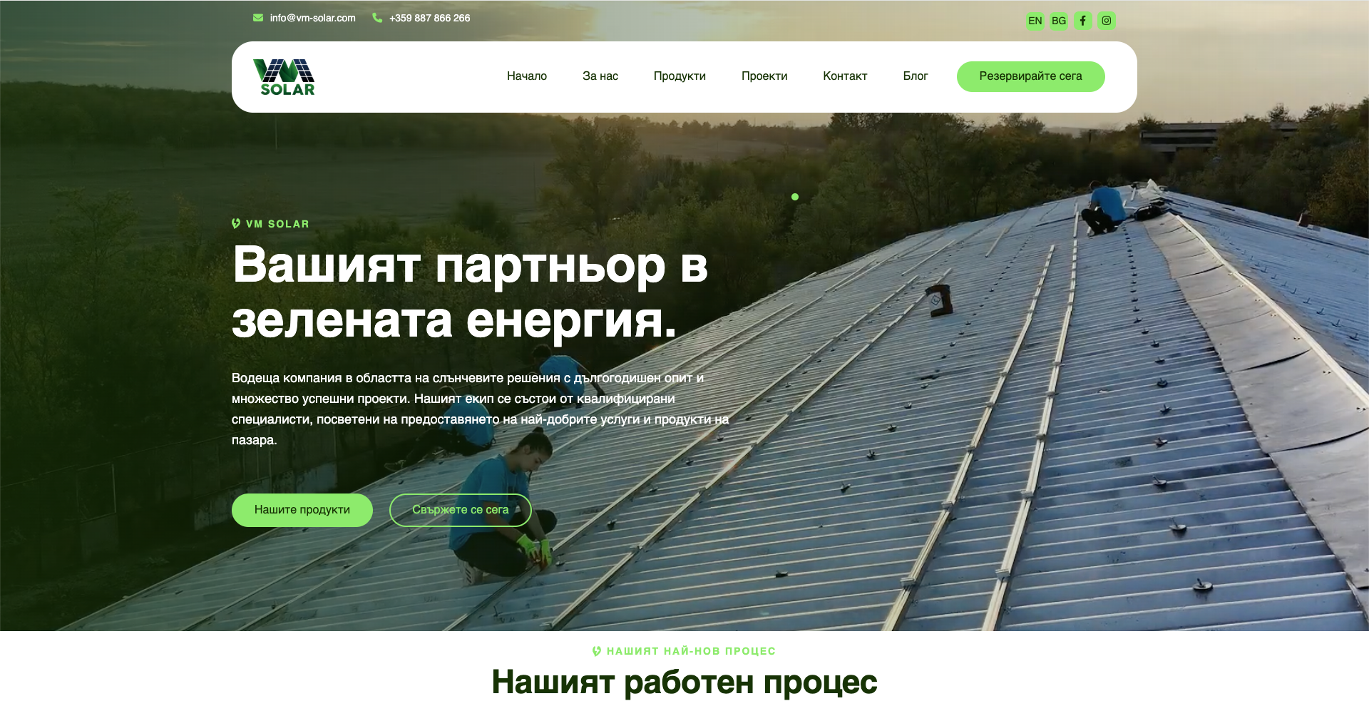 Клиентът, международна компания с дейност в България, Нидерландия и Гърция, се нуждаеше от корпоративен уебсайт, който да позиционира бранда като лидер в зелената енергия. Основното изискване беше да се представи сложна техническа информация (за инвертори, батерии и соларни керемиди) по достъпен и визуално привлекателен начин за крайния клиент.